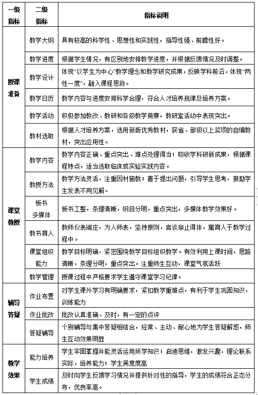 教学质量是高等学校的生命线。建立相对完善、科学合理的各教学环节质量标准是保障和提高教学质量的重要手段。为进一步规范教学过程管理,保证教学质量的不断提高,依据相关制度法规,结合学校工作实际,制定各主要教学环节质量标准。