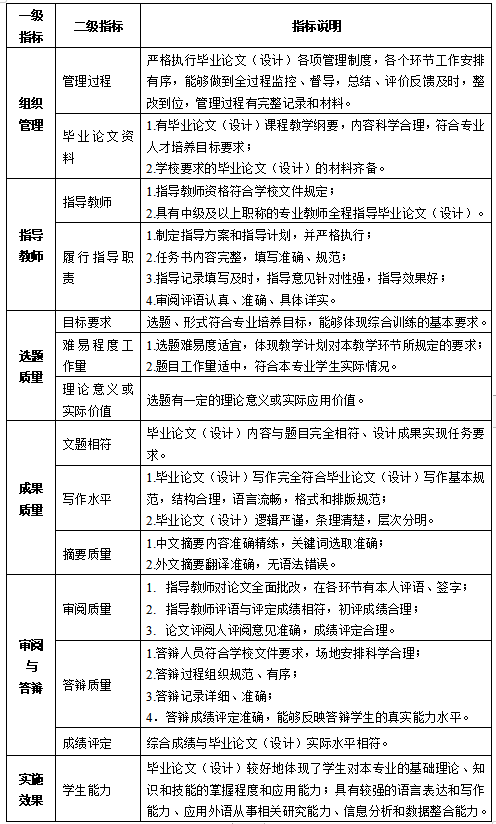各教学单位要做好毕业论文(设计)的总结工作,总结内容包括:毕业论文(设计)基本情况(选题情况、任务书完成情况、开题情况、指导情况、过程检查情况、成果、成绩评定、主要工作经验、突出的导师及学生情况等)、本单位论文工作存在的主要问题,提高论文质量有显著效果的做法,对论文工作的意见和建议等。